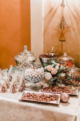 Lastly, when it comes to the holidays, we know one of our main focuses is of course the food! Christmas dinner is such an important aspect of planning your Christmas Day with family and friends, and even more important when planning your holiday wedding! Include Christmas staples like honey roasted ham, a beautiful turkey carving station and a stunning charcuterie board to get into the holiday spirit. During a Christmas wedding one of our favorite parts is of course desserts, welcome to the land of sweets! Include fun stations like a hot coco bar, cider station, festive Christmas wedding cake and like we said, get creative to make your very own land of sweets featuring cake, cookies, candy and more! This will have guests feeling like they are not only celebrating the most wonderful day of your life, but also the most wonderful time of the year!