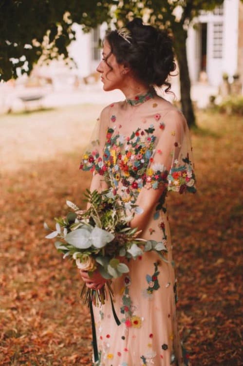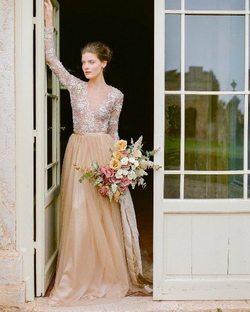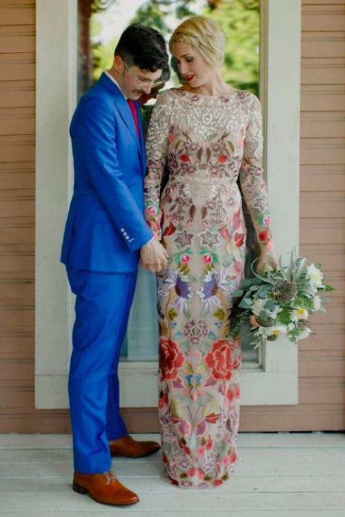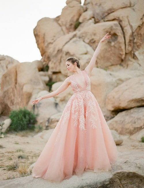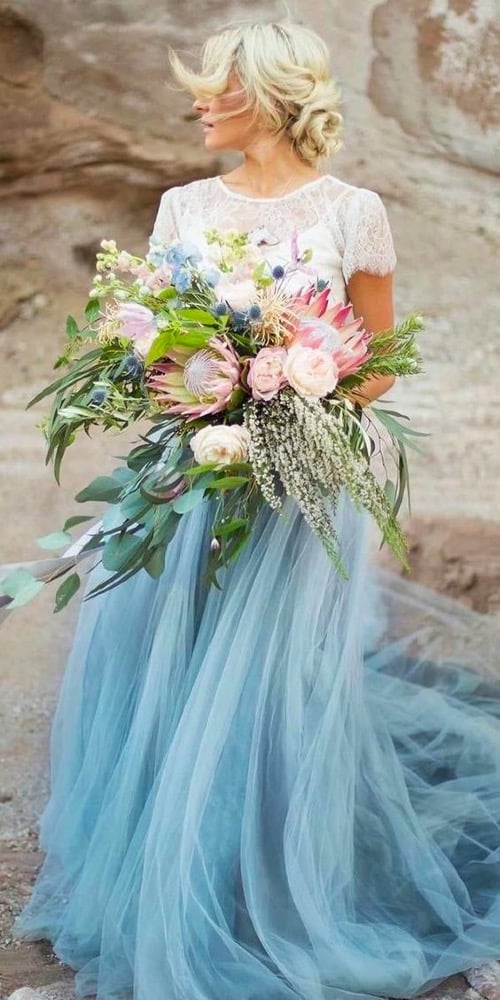 The first way to stand out and be true to yourself (whatever that means to you!) is by picking a dress that speaks to you. Designers today know that so many brides are thinking outside the box, and are excited to go for a more fashion forward look! Blush, beige, silver, pink, lavender, blue and even multicolor are only a few of the fabulous options to pick from! From a subtle pop of silver, to a blush hue overlay, or full out colorful design, the choice is yours! Never forget, you can still feel like a bride while wearing any color of the rainbow in these outstanding custom colorful bridal gowns!