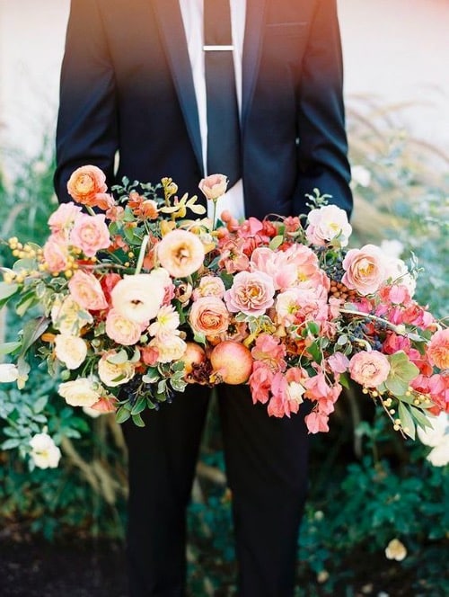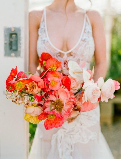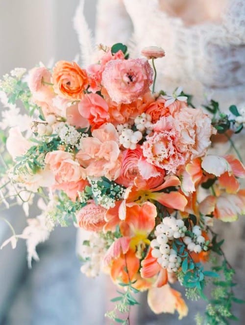It’s often that many brides thinking too much color could be overkill when it comes to your wedding and want to keep their palette mostly neutral. But we say that old school sense of thinking is crazy when you have so many beautiful natural shades full of dimension to choose from! Including coral flowers in your bridal bouquet & wedding centerpieces is a fabulous way to bring the season to life and add vibrancy to the room! Adding little pieces of coral blooms is another beautiful yet subtle way to include color but stick to your neutral palette. A trend within a trend we are loving is mixing all different shades of coral flowers together to create a show stopping piece. Coral chuppahs and flower arches are one of our favorite spring trends and we can’t wait to see this trend come to life this season!