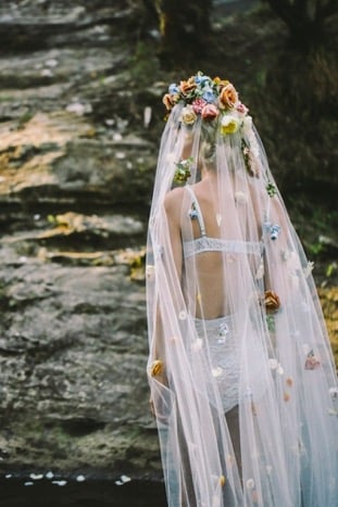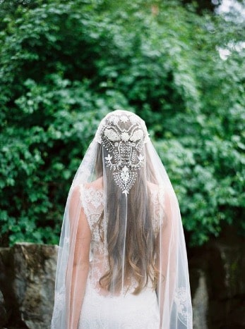 The most traditional form of a wedding headdress is of course the classic veil. Veils have been worn since the beginning of time for weddings as a staple piece to your big day. Some say the veil was originally started as a Roman tradition while walking down the aisle. It hides the brides purity from jealousy and evils that may jinx your union, while other cultures and religions view it as a sign of modesty. Yet, as the traditions grew so did the popularity of the classic white veil as it became a staple wedding day look. We love that veils have now taken a turn into the new age and become a fashion icon for brides. Veils come in a variety of colors, textures, shapes, embellishments and more. From a traditional lace veil that flows to the ground or a vintage birdcage, to a stunning tool masterpiece, the options are endless!