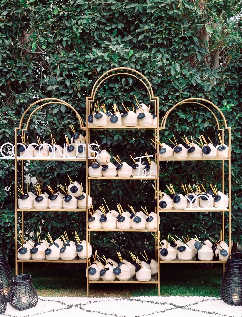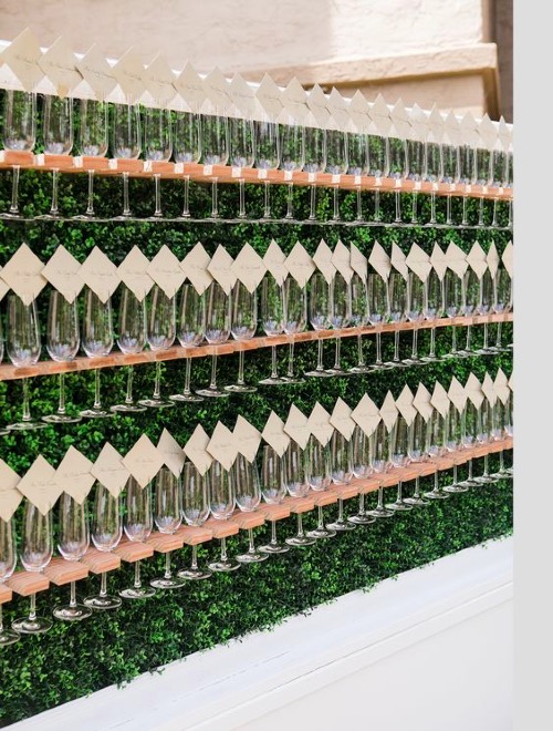 Another trend that brings a lot of character are interactive escort displays. The guests play their part in finding their name/seat number but are also invited to participate in the fun! Adding a special treat is a great way to get the party started! Glasses of champagne or a touch of sweet is a new and creative way to get guests in the wedding mood and have a exciting start from the gecko!