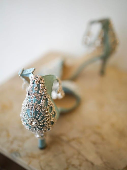 - A pop of SHOE! For the most part, a wedding shoe is only seen when shown, so why not have a fun little secret under that ball gown with a stunning pair of vibrant blue pumps!