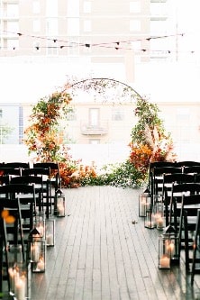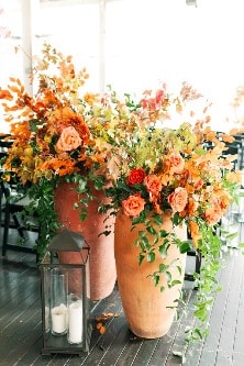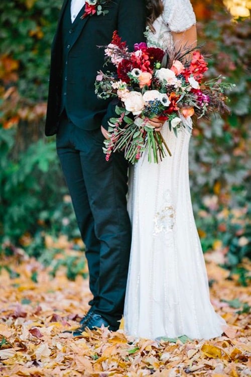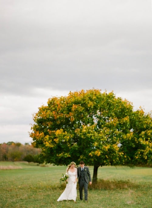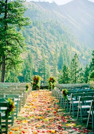 Firstly, in the fall we love to take advantage of natures beauty. So of course this means getting married outdoors. There are so many amazing options for a gorgeous outside ceremony and reception. Getting married in a park full of trees with changing leaves, on top of a mountain overlooking a grand landscape, or the middle of a lush forest is just a few of the many options. What we love so much about these options is that you let nature do most of the work. Of course you want to dress it up with the flowers of your choice, decor accents and lighting, but just remember nothing says fall more than getting married in the great outdoors.