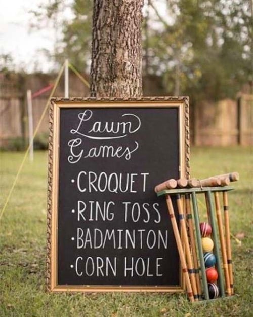 As the industry grows, we have a lot of people wanting to make their special day their own, and we see a lot of couple having beautiful backyard or outdoor weddings and we have so many great ideas for this as well! From yard games like bocce ball, corn hole, can-jam, tic tac toe, ring toss and more, there are so many options! We suggest having these games during cocktail hour to keep your guest busy and not take them away from the weddings main events. Get creative while deciding what games to play, create DIY projects, and just remember it’s okay to feel like a kid with your favorite people around you!