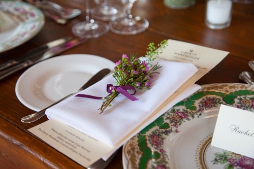 Another really fun thing you could do is dress up the room with vintage accessories. From your invitations, table numbers, seating cards, menus, napkins, silverware and more all, these of little details really bring a room together and add a special touch to your guest tables.