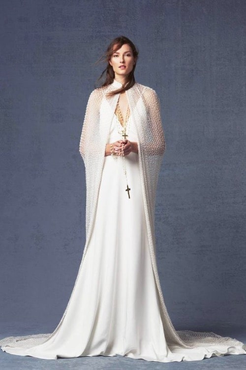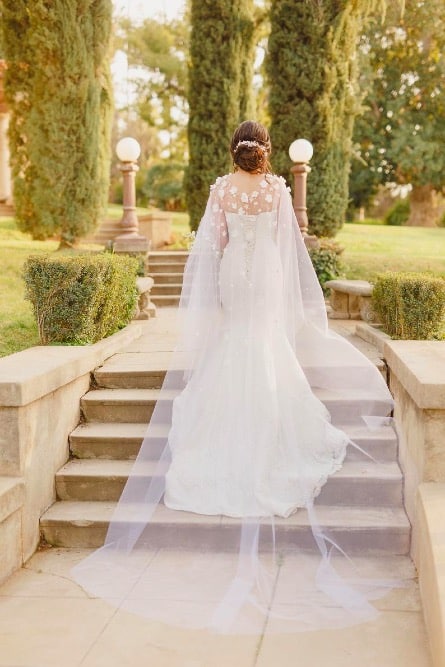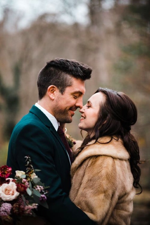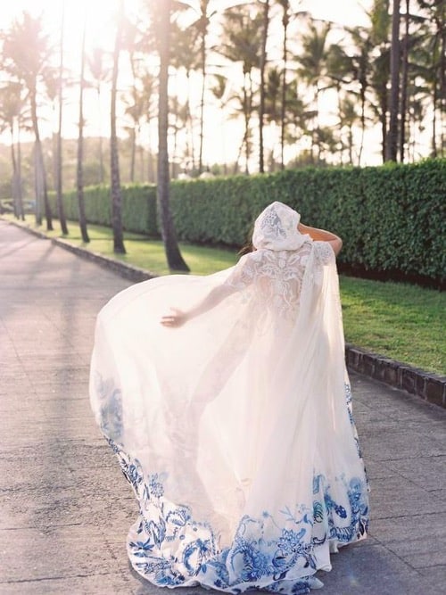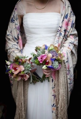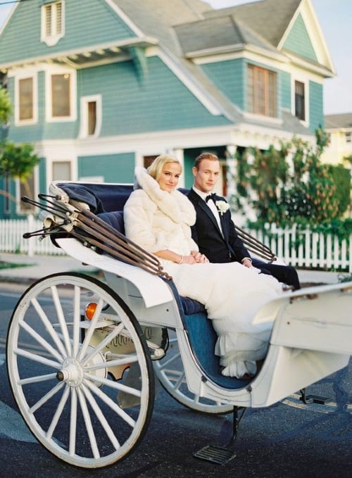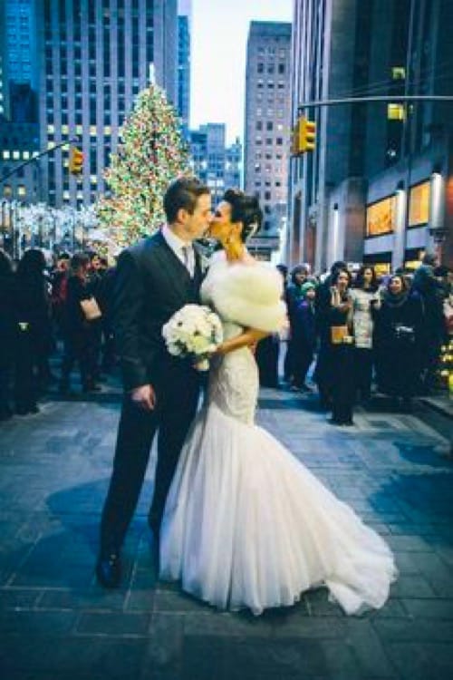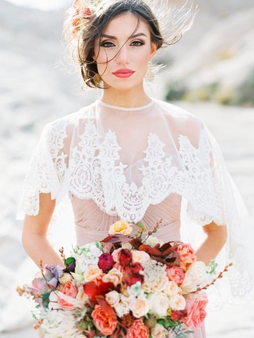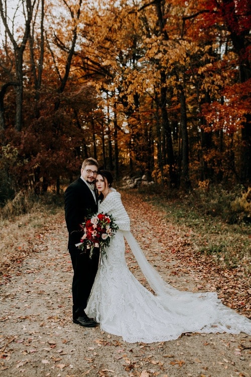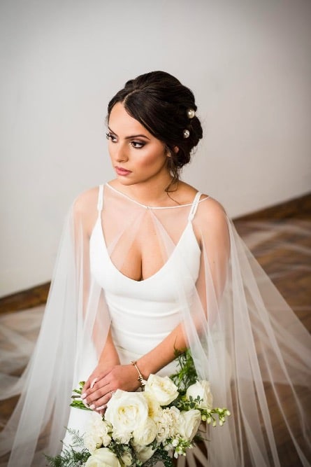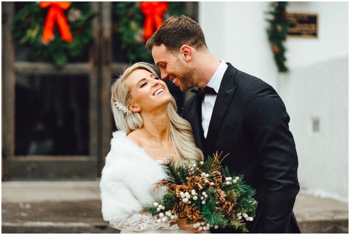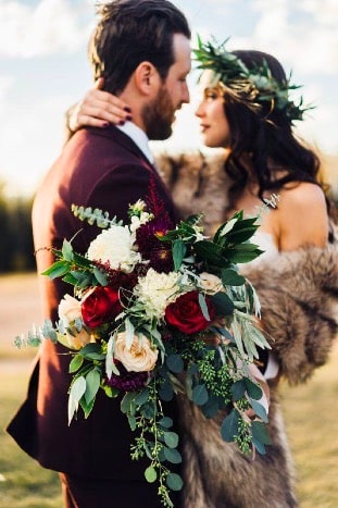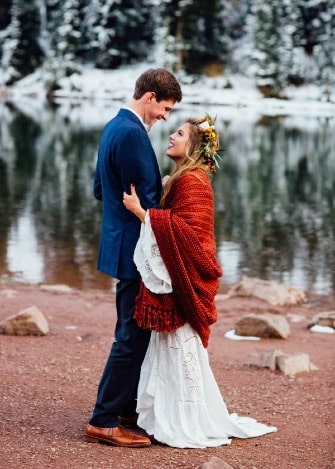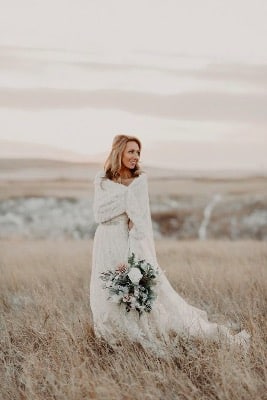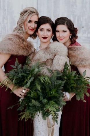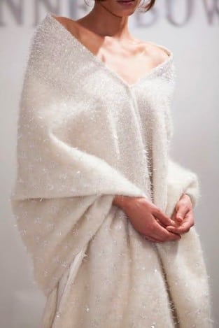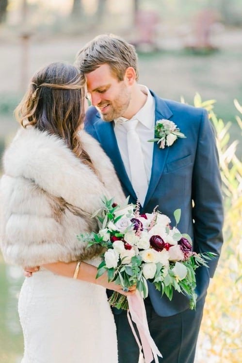 The last look that we are really loving this winter is the traditional shawl or cape. A shawl is the perfect accessory for our bride who is looking to stay warm in the cold but not overpower her gown. Shawls and capes offer an enchanted spin to your look. They make for a very sweet, romantic and fairytale bridal feel as well as keep you toasty in many weather conditions. We love a cape that is subtle with an oversize hood and detailed trim. A perfect wedding day shawl can be a magnitude of designs from patterns, heavy fabrics, colors, blanket wraps and more. You can get creative and pick a design that accents your holiday theme or go with a subtle neutral ascetic. Maybe it’s freezing, but hey it’s your wedding day! Don’t forget a shawl can be purely ascetic; so make sure to show off your beautiful sheer shawl in all of its glory for the perfect winter wonderland accessory! There are so many options in this category, which makes it such a perfect fit for so many of our brides. All styles are elegant, sophisticated, and add to the ambience of your winter wedding. Whatever you choose, we hope it is the perfect fit to keep you warm and stylish on your big day.