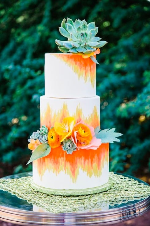 Painted cakes are an upcoming new trend for this season, and they are indeed a work of art! you dream it, it can be painted; flowers, waves, patterns, ombre and more. Get creative with your cake designer because when painting a cake, the sky is the limit!