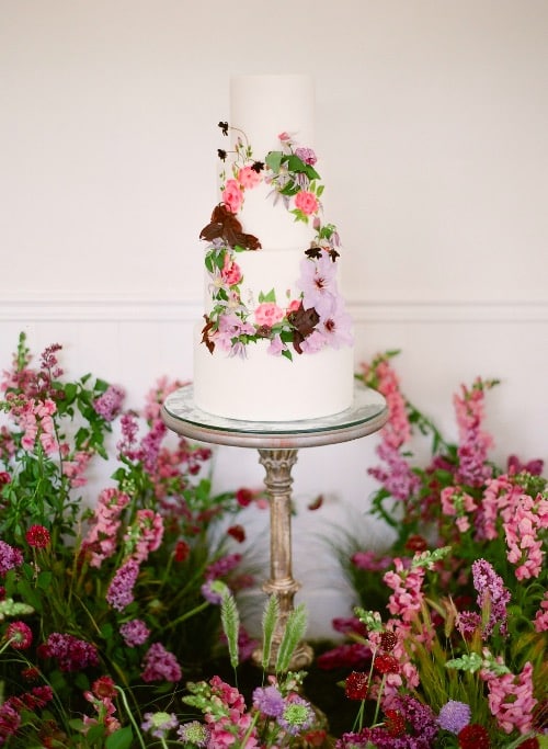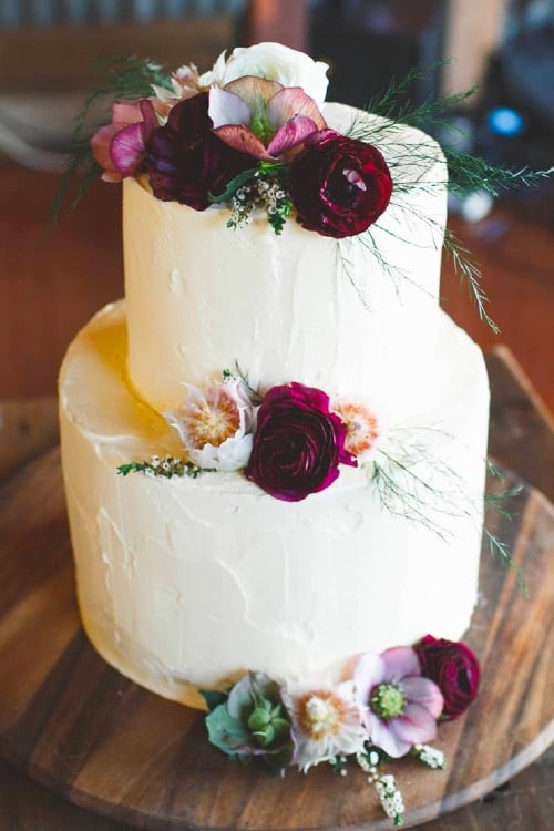 As we are flower people, it’s only fair to say that one of our favorite wedding cake designs encompasses tons of fresh flowers! Fresh flowers are the perfect accent for almost any cake! Place them on naked cakes, fondant cakes or even a classic frosted cake for a sweet floral display. And don’t forget, you can never have too many flowers!